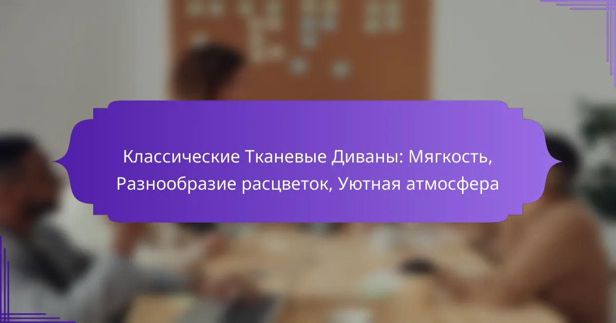 Классические тканевые диваны представляют собой идеальное сочетание стиля и комфорта, предлагая мягкость и разнообразие расцветок для любого интерьера. Они помогают создать уютную атмосферу, подходя как для традиционных, так и для современных пространств. Правильный выбор дивана обеспечит гармонию и комфорт в вашем доме.