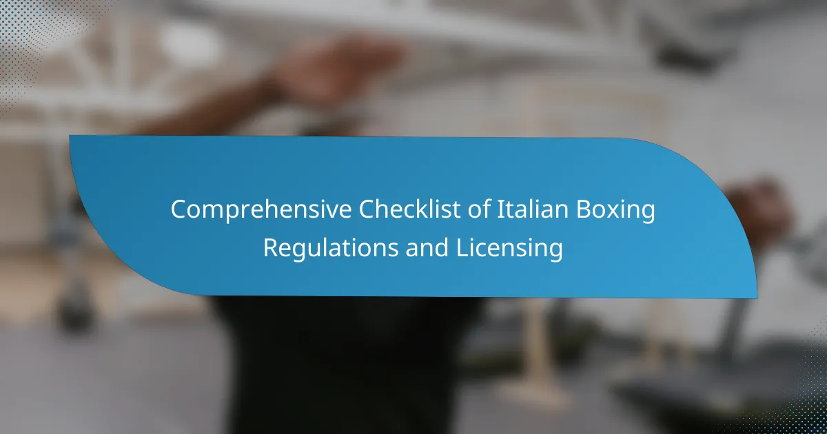 Italian boxing regulations are essential for ensuring the integrity and safety of the sport, covering areas such as licensing, weight classes, and event promotion. Familiarity with these rules is vital for athletes, promoters, and trainers to navigate the competitive landscape effectively. This comprehensive checklist outlines the necessary steps and requirements for compliance within the Italian boxing framework.